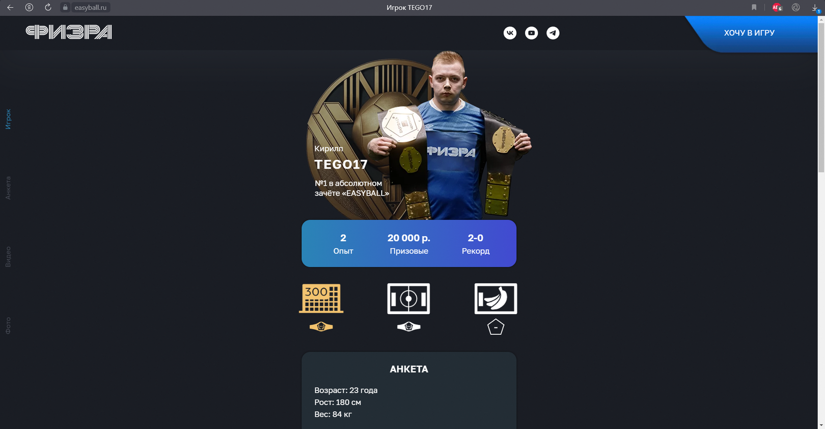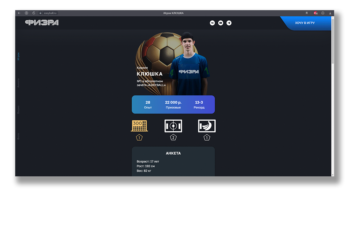 Важным инструментом развития проекта является интерактивная карточка игрока с отоплением его достижений. Мы спроектировали UX/UI